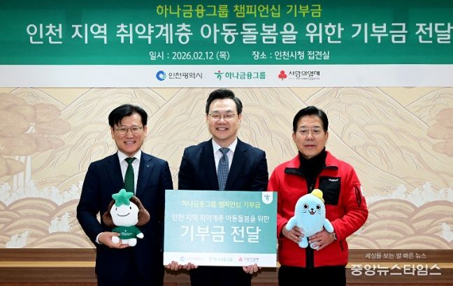 이날 시청에서 열린 전달식에는 하병필 인천광역시 행정부시장, 전병권 하나은행 경인영업본부 지역대표, 조상범 인천사회복지공동모금회회장이 참석했다.