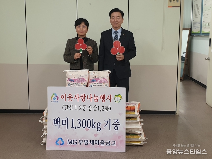 (중앙뉴스타임스 = 방재영 기자) 인천 부평구 갈산2동은 지난 11일 부평새마을금고로부터 ‘설 이웃사랑 나눔’ 백미 300kg을 기탁받았다고 밝혔다.