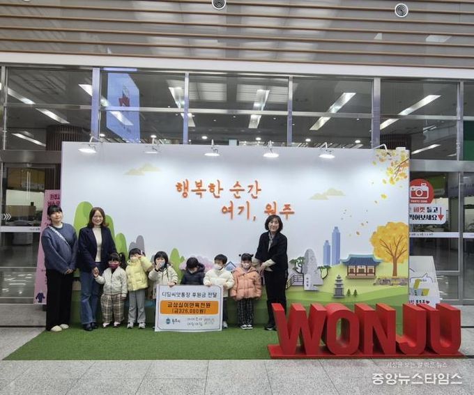 (중앙뉴스타임스 = 방재영 기자) 원주 아이조아어린어집은 지난 11일 원아들과 함께 자립 아동 지원을 위한 디딤씨앗통장 후원금 32만 6,000원을 원주시에 전달했다.