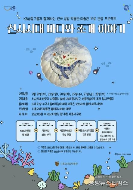 ‘선사시대 바다와 조개 이야기’는 KB금융그룹이 한국박물관협회와 함께 추진하는 ‘전국 공립 박물관ㆍ미술관 무료 관람 프로젝트’의 일환으로 운영된다. KB스타뱅킹 앱(App) 내 ‘국민지갑’에서 쿠폰을 발급받아 사용하면 재료비를 포함한 체험 비용 전액이 지원돼 무료로 참여할 수 있다.