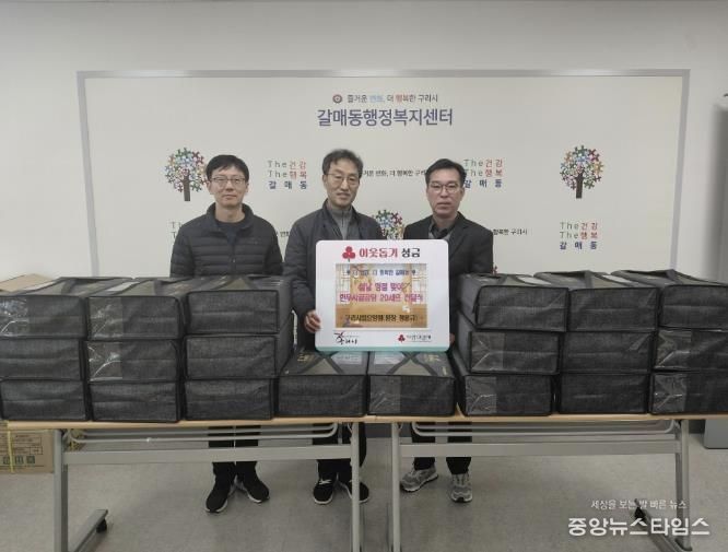 (중앙뉴스타임스 = 방재영 기자) 구리시 갈매동 행정복지센터는 지난 2월 13일 구리시립노인전문요양원으로부터 한우 국거리와 사골국물 20세트를 후원받고 설 명절맞이 후원 물품 전달식을 가졌다.