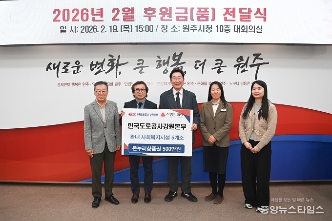 (중앙뉴스타임스 = 방재영 기자) 한국도로공사 강원본부(대표 함진규)는 19일 원주시청을 방문해 온누리상품권 500만 원을 기부했다.