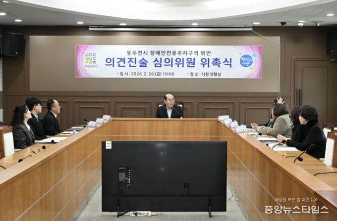 (중앙뉴스타임스 = 방재영 기자) 동두천시는 지난 20일 시청 상황실에서 ‘장애인주차구역 위반 의견진술심의위원회’신규 위원 위촉식을 개최했다.
