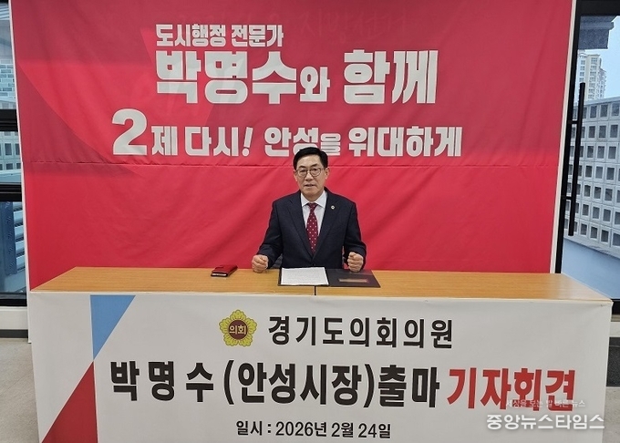 국민의힘 박명수 경기도의원이 24일 당사에서 기자회견을 열고 오는 6월 3일에 치러질 제9회 전국동시지방선거에 안성시장으로 출마를 선언했다.
