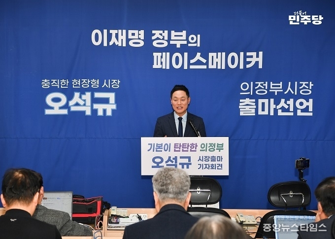 (중앙뉴스타임스 = 방재영 기자) 오석규 경기도의원(더불어민주당)이 24일 의정부시청 브리핑룸에서 기자회견을 열고 의정부시장 출마를 공식 선언했다. 오 의원은 “의정부 시민의 충직한 도구가 되겠다”며 “멈춰 있는 의정부를 다시 움직이고, 시민의 삶을 실질적으로 바꾸는 시장이 되겠다”고 밝혔다.