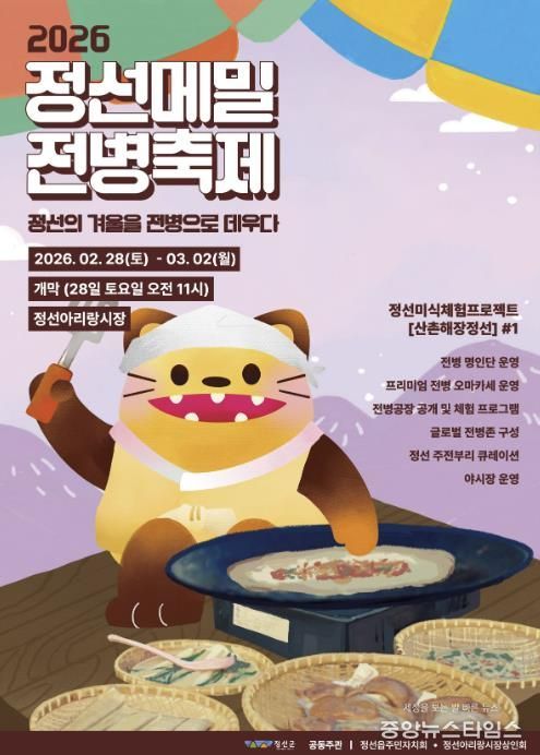 정선군은 오는 2월 28일부터 3월 2일까지 사흘간 정선읍 정선아리랑시장 일원에서 개최되는 “2026 정선메밀전병축제”의 성공적인 개최를 위해 막바지 준비에 박차를 가하고 있다고 밝혔다.