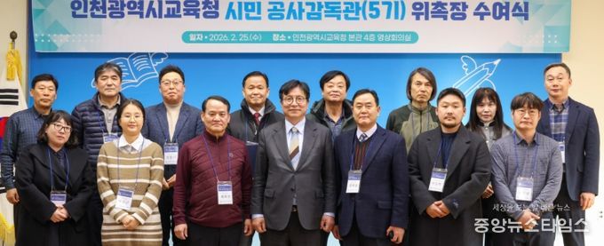 (중앙뉴스타임스 = 방재영 기자) 인천시교육청은 지난 25일 시교육청 영상회의실에서 학교 시설공사의 투명성과 신뢰성을 높이기 위한 ‘시민 공사감독관 5기 위촉식’을 개최했다.