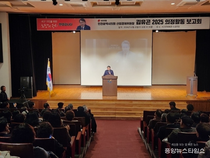 (중앙뉴스타임스 = 방재영 기자) 인천시의회 산업경제위원장 김유곤 의원(국·서구3)은 25일 인천서구 문화회관에서 지역 주민과 시·구의원, 단체 및 협회장 등 각계 인사들이 참석한 가운데 의정활동보고회를 열고, 지난 3년여간의 의정활동 성과와 향후 지역 발전 방향을 시민들과 공유했다.