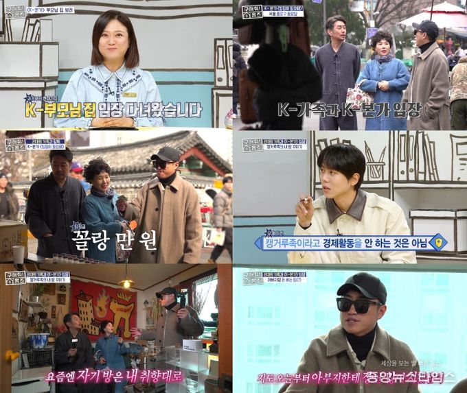 이날 방송은 ‘K-본가’ 특집으로 꾸며져 자녀를 모두 독립시킨 집부터 캥거루족 자녀와 함께 사는 집까지 여러 형태의 본가를 소개했다. 장동민, 김대희, 신봉선이 함께 합을 맞췄던 KBS '개그콘서트'의 ‘대화가 필요해’ 가족 콘셉트로 등장해 눈길을 끌었다. 세 사람은 극 중 가족 설정을 그대로 살린 현실감 넘치는 상황극을 펼치며, 다양한 형태의 현실 가족들을 만나 공감과 웃음을 동시에 자아냈다.