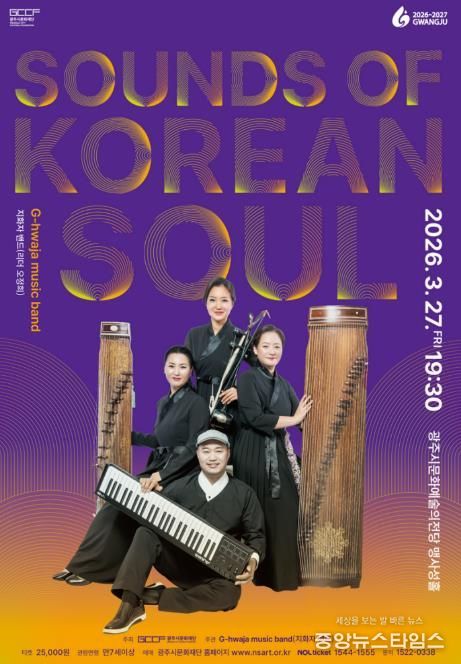 (중앙뉴스타임스 = 이광운 기자) 재단법인 광주시문화재단은 오는 3월 27일 오후 7시 30분, 광주시문화예술의전당 맹사성홀에서 국악 “Sounds of Korean Soul”를 개최한다. 이번 공연은 뉴욕과 뉴저지를 기반으로 활동하는 지화자밴드(G-hwaja music band)의 한국 첫 무대다.