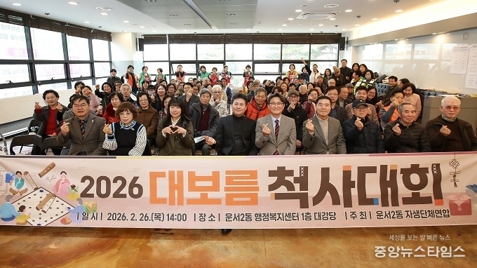 (중앙뉴스타임스 = 방재영 기자) 인천 중구 운서2동 자생단체연합회는 정월대보름을 맞아 지난 26일 운서2동 행정복지센터 1층 대강당에서 주민들과 함께 한 해의 안녕과 풍요를 기원하는 ‘척사대회’를 개최했다.