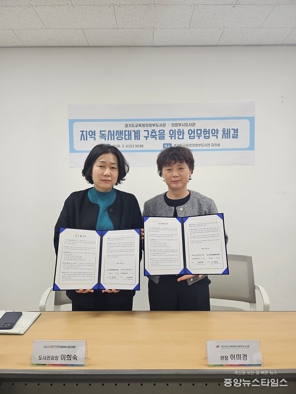 (중앙뉴스타임스 = 방재영 기자) 경기도교육청의정부도서관이 4일 의정부시도서관과 ‘지역 독서생태계 구축을 위한 업무협약’을 체결했다.