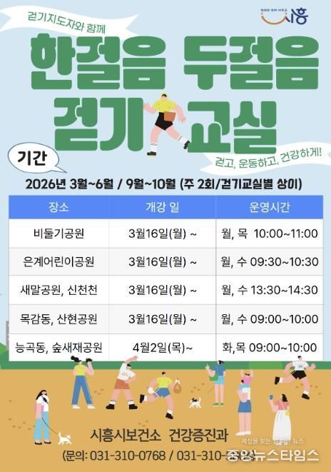 (중앙뉴스타임스 = 방재영 기자) 시흥시는 시민들의 일상 속 걷기 실천을 장려하고 건강생활 습관 형성을 돕기 위해 ‘한 걸음 두 걸음 걷기교실’을 운영한다.