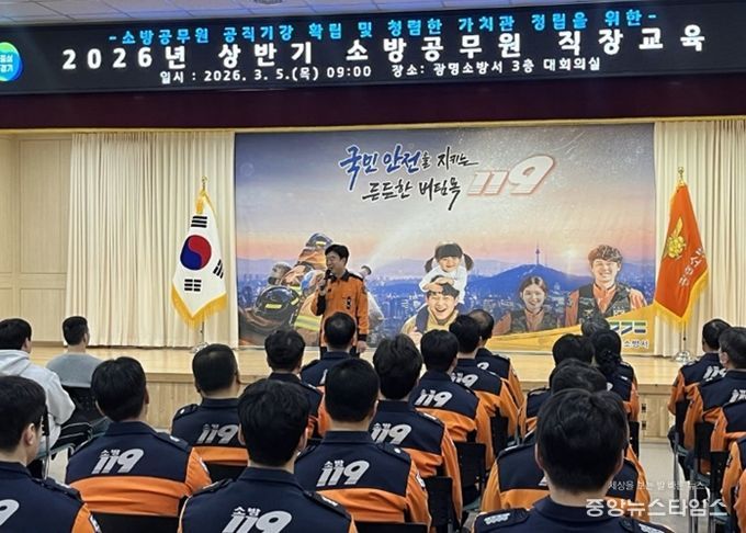 (중앙뉴스타임스 = 방재영 기자) 광명소방서는 5일 본서 3층 대회의실에서 전 직원을 대상으로 2026년 상반기 소방공무원 직장교육을 실시했다.