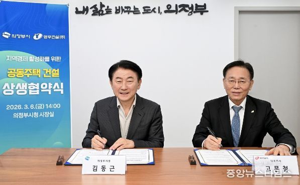 (중앙뉴스타임스 = 방재영 기자) 의정부시는 6일 ‘아파트 3무(無) 혁신 10대 프로젝트’의 실효성을 높이고자 양우건설(주)과 세 번째 상생협약을 체결하고, 지역 건설산업의 상생 기반 구축과 경제 활성화에 본격적인 시동을 걸었다. 특히 이날 협약식에는 양우건설(주) 고문철 대표가 직접 참석해 시와의 협력 의지를 표명했으며, 이를 통해 사업 추진에 대한 신뢰도를 한층 높이는 계기를 마련했다.