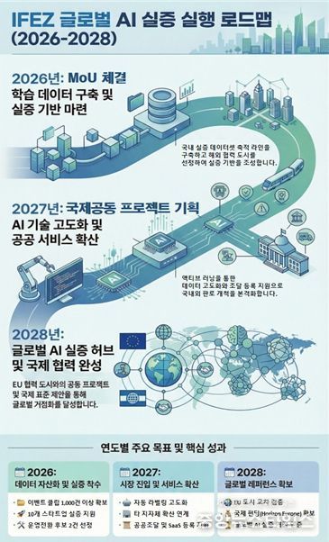 이는 ‘도시가 데이터를 제공하고, 기업이 기술을 고도화하며, 공공이 검증된 AI를 구매하는 구조’를 국제적으로 확산하는 시도다. IFEZ는 2026년 실행형 업무협약(MoU) 체결을 시작으로 2027년 국제 공동 파일럿 기획, 2028년 국제 공동 실증 및 글로벌 AI 실증 허브 구축으로 이어지는 단계적 로드맵을 추진할 계획이다.