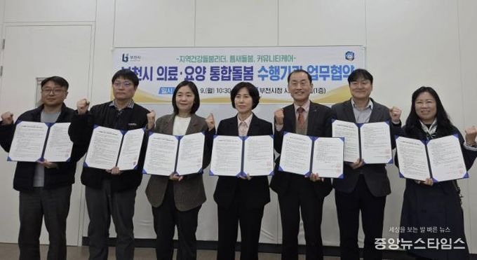 (중앙뉴스타임스 = 방재영 기자) 부천시는 지난 9일 통합돌봄 사업의 안정적 추진을 위해 공모로 선정된 6개 보조사업 수행기관과 ‘부천시 통합돌봄 업무협약’을 체결했다.