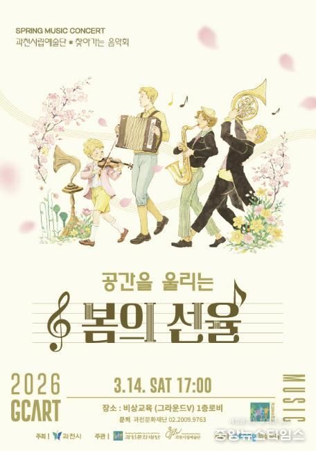 과천시립예술단은 오는 14일 오후 5시, 비상교육 사옥 로비에서 시민들을 위한 ‘찾아가는 음악회 - 공간을 울리는 봄의 선율’을 개최한다. 이번 공연은 기업 공간을 공연장으로 활용해 시민들이 보다 가까운 곳에서 음악을 즐길 수 있도록 마련됐다.