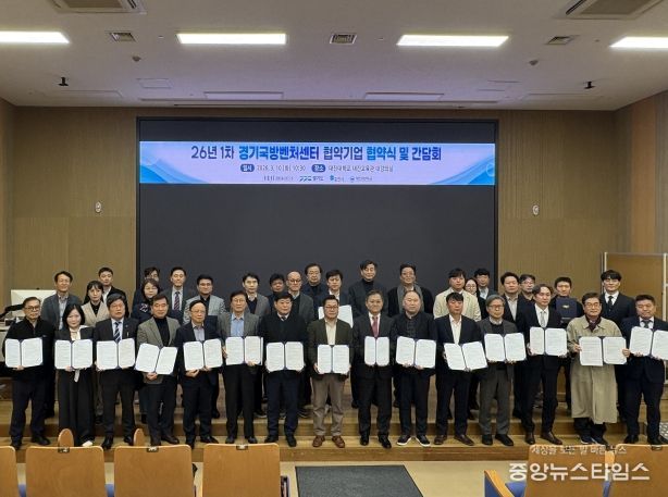(중앙뉴스타임스 = 방재영 기자) 경기국방벤처센터가 올해 제1차로 선정한 협약업체 38개사를 대상으로 기업 협약식과 간담회를 열며 경기도 방위산업 생태계 가동의 본격적인 시작을 알렸다.