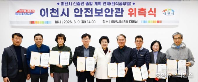 (중앙뉴스타임스 = 방재영 기자) 이천시는 지난 9일 ‘이천시 안전보안관 위촉식’을 열고 신규 안전보안관 7명에게 위촉장을 수여했다.