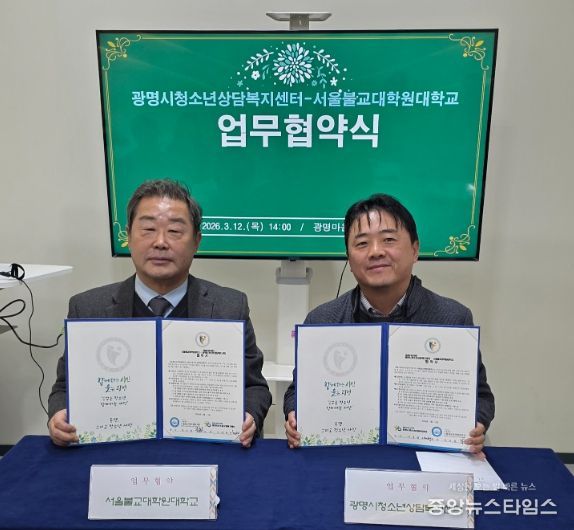 (중앙뉴스타임스 = 방재영 기자) 광명시청소년재단 광명시청소년상담복지센터와 서울불교대학원대학교는 광명마음숲상담소에서 3월 12일 지역청소년의 심리·정서 지원 강화를 위한 업무협약(MOU)을 체결했다.