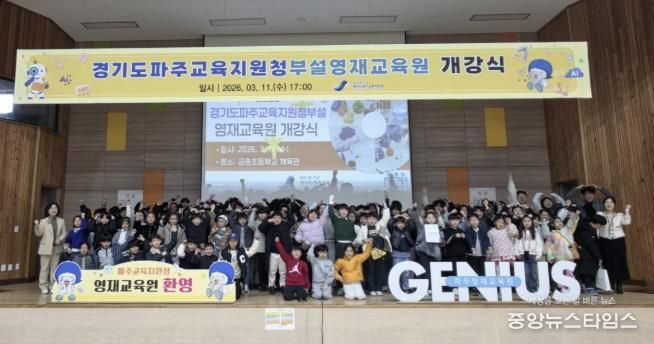 (중앙뉴스타임스 = 방재영 기자) 경기도파주교육지원청은 3월 11일 금촌초등학교 체육관에서 2026 경기도파주교육지원청부설영재교육원 개강식을 성황리에 개최했다고 밝혔다. 이번 행사에는 학생, 학부모, 지도교사 등 200여 명이 참석하여 새로운 배움의 시작을 함께 축하했다.