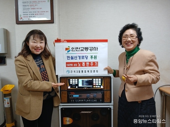 (중앙뉴스타임스 = 방재영 기자) 인천 남동구 간석3동 행정복지센터(동장 한영숙)는 인천교통공사(사장 최정규)가 지역 어르신들의 여가활동 지원을 위해 만월산 경로당에 약 150만 원 상당의 노래반주기를 후원했다고 13일 밝혔다.