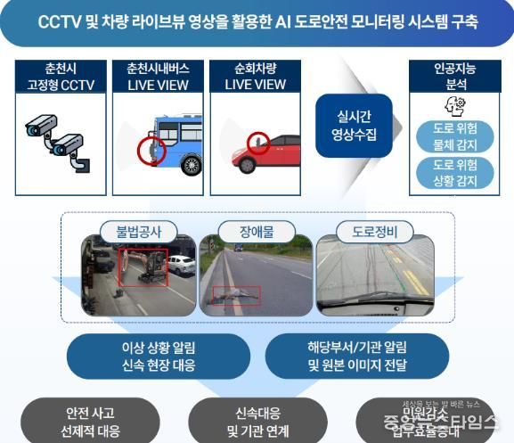 (중앙뉴스타임스 = 방재영 기자) 춘천시가 인공지능(AI) 기반 스마트 도로 모니터링 시스템 실증 사업을 상반기 중으로 마무리하고 기술 고도화를 위한 후속 공모사업에 도전한다.