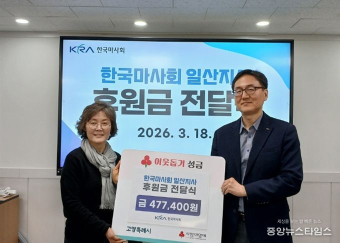 이번 기부금은 약 47만 원으로, 한국마사회 일산지사 건물 내 설치된 모금함에 시민들이 자발적으로 기부한 금액이다.