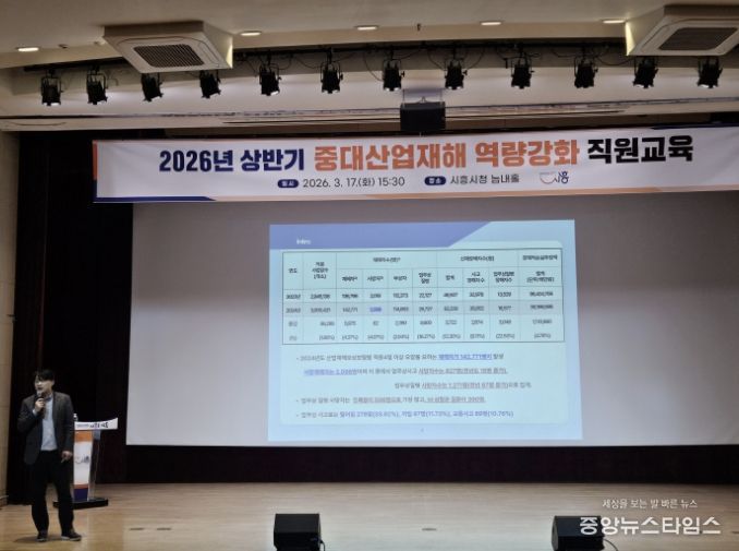 (중앙뉴스타임스 = 방재영 기자) 시흥시는 지난 17일 늠내홀에서 공직자 250여 명을 대상으로 ‘중대산업재해 역량 강화 교육’을 실시했다.