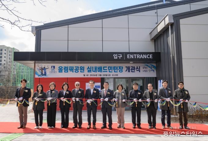 (중앙뉴스타임스 = 방재영 기자) 수원 올림픽공원에 코트 5면이 있는 실내배드민턴장이 문을 열었다.