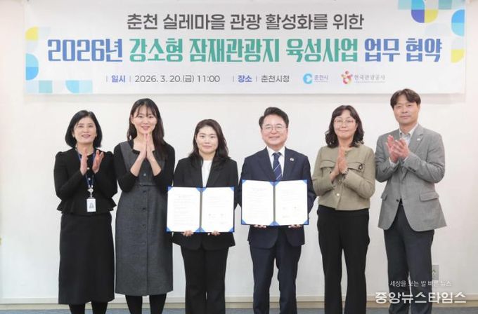 춘천의 실레마을은 문화체육관광부와 한국관광공사가 추진하는 ‘2026 강소형 잠재관광지’로 선정된 곳으로 이번 협약은 관광자원의 체계적 육성과 관광객 유입 확대를 위한 협력 기반을 마련하기 위해 추진됐다.