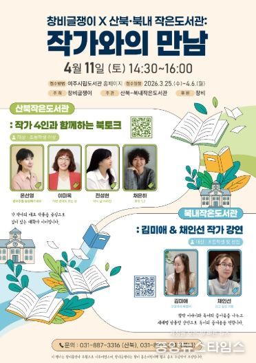 (중앙뉴스타임스 = 이광운 기자) 오는 4월 11일 여주시 산북작은도서관과 북내작은도서관에서‘2026년 찾아가는 창비글쟁이’기부 강연이 동시에 개최된다.