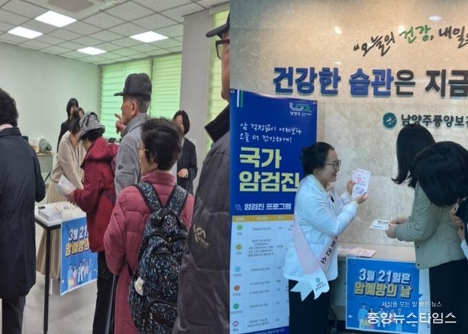 (중앙뉴스타임스 = 방재영 기자) 남양주시는 17일과 20일 남양주풍양보건소가 ‘암 예방의 날’을 맞아 별내보건지소와 보건소 방문자를 대상으로 국가건강검진 수검 독려 캠페인을 실시했다고 밝혔다.