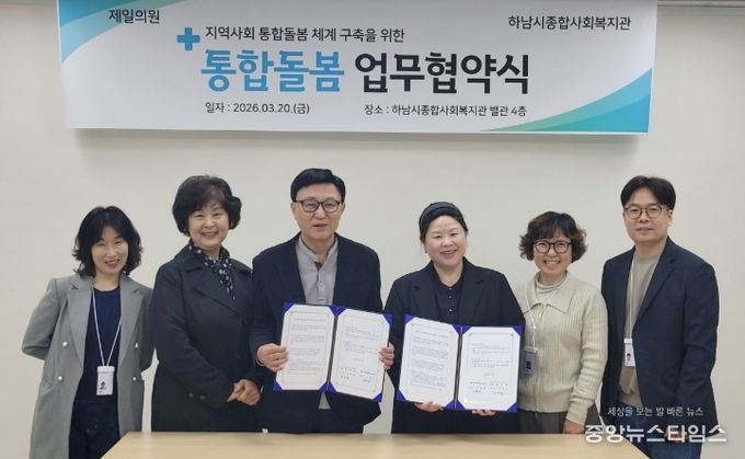 (중앙뉴스타임스 = 방재영 기자) 하남시종합사회복지관과 하남시 재택의료센터로 지정된 제일의원은 지난 20일, 하남시 관내 돌봄 취약계층의 건강권 보장과 지역사회통합돌봄 체계 구축을 위한 업무협약을 체결했다고 밝혔다.