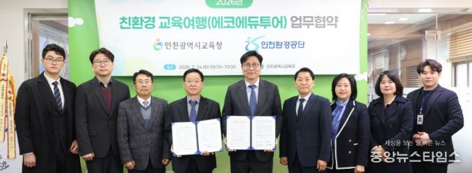 (중앙뉴스타임스 = 방재영 기자) 인천광역시교육청은 24일 인천환경공단과 ‘친환경 교육여행 운영 및 활성화를 위한 업무협약’을 체결했다.