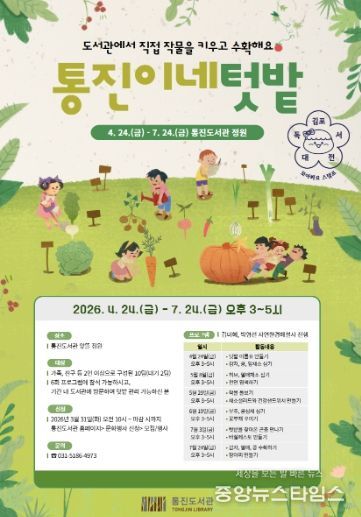 (중앙뉴스타임스 = 이광운 기자) 김포시 통진도서관은 도서관에서 직접 작물을 키우고 수확하며 생태 감수성을 키우는 체험형 프로그램 ‘통진이네 텃밭’을 오는 4월 24일부터 7월 24일까지 운영한다.