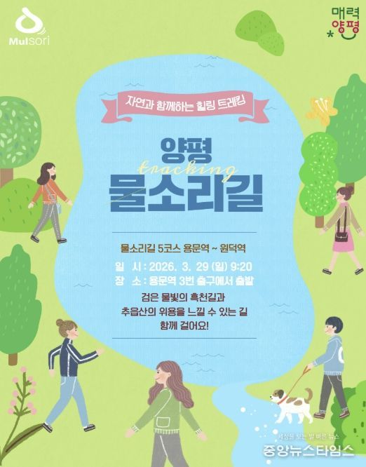 (중앙뉴스타임스 = 방재영 기자) 양평군은 오는 3월 29일 ‘물소리길 5코스(용문역~원덕역)’에서 물소리길 걷기 행사를 진행한다.