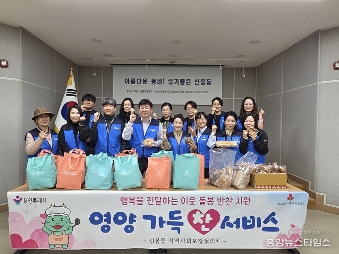 신봉동 지역사회보장협의체는 27일 영양 취약계층의 건강한 식생활을 지원하고자 특화사업 ‘영양가득찬 서비스’를 시작했다. 협의체는 홀로 사는 어르신과 불편한 장애인을 위해 2022부터 매달 1회 반찬을 제공하는 특화사업을 추진하고 있다. 이날 위원들은 12가구를 방문해 반찬과 함께 성복동 소재 ‘㈜도마치111‘에서 기탁한 갓 구운 빵을 함께 전달했다. 전달받은 어르신은 “요즘 몸이 불편해서 반찬을 해 먹기가 어려운데, 맛있는 빵과 반찬을 가져다줘서 너무나 고맙다“고 감사를 표했다. 김 위원장은 “영양가득 찬 서비스는 단순한 반찬 지원을 넘어 이웃의 건강과 안부를 함께 살피는 의미 있는 사업”이라며 “홀로 끼니를 챙기기 어려운 분들이 든든하고, 영양이 가득한 한 끼 드실 수 있도록 12월까지 꾸준히 사업을 진행할 예정”이라고 말했다.