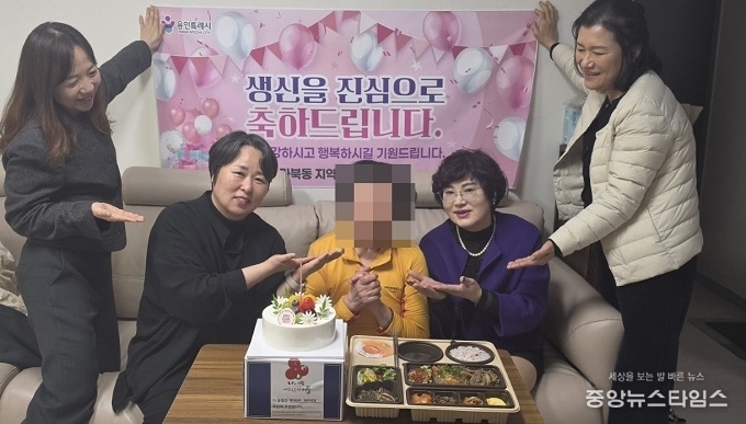 마북동 지역사회보장협의체는 27일 생신을 맞은 홀로 사는 어르신 2명에게 케이크를 전달했다. 협의체 위원들과 마북동 공직자들은 생신을 맞은 어르신 댁을 직접 방문해 케이크와 함께 미역국 등 건강 도시락을 전달하고, 축하 노래를 부르며 생신을 축하했다. 이날 케이크를 받은 한 어르신은 “혼자 지내다보니 생일도 잊고 지나가기 일쑤였는데, 이렇게 맛있는 케이크와 음식을 들고 찾아와 직접 노래까지 불러주니 마음이 따뜻해진다”고 감사를 전했다. 이번 활동은 협의체 특화사업인 ‘생일상은 사랑을 싣고’의 일환으로 이뤄졌다. 협의체는 매달 생신을 맞은 어르신 2명을 선정해 파리바게트 용인마북점으로부터 후원 받은 케이크를 전달한다.