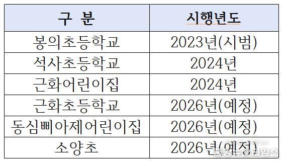 한편 시는 지난 2023년 봉의초등학교를 시작으로 2024년 석사초와 근화어린이집 등 총 3곳에서 탄력운영을 도입해 왔다.