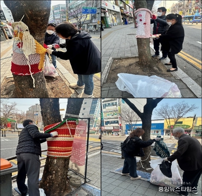 (중앙뉴스타임스 = 방재영 기자) 인천 남동구 만수6동 주민자치회는 최근 ‘함께 뜨는 행복, 트리니팅(Tree-Knitting)’작품을 나무에서 제거하는 활동을 진행했다고 30일 밝혔다.