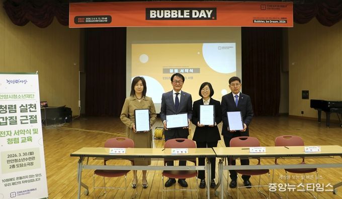 (중앙뉴스타임스 = 방재영 기자) 안양시청소년재단은 지난 30일 만안청소년수련관 도담소극장에서 전 직원을 대상으로 내부 커뮤니케이션 행사 ‘버블데이(BUBBLE DAY)’를 운영하며 조직 소통과 청렴문화 확산에 나섰다.