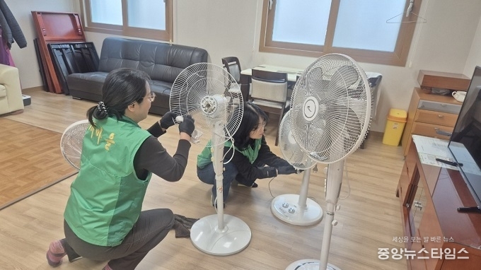 특히, 오래된 먼지와 찌든 때로 닦기 힘든 선풍기를 깨끗이 물 세척하여 깨끗한 환경을 조성했다.