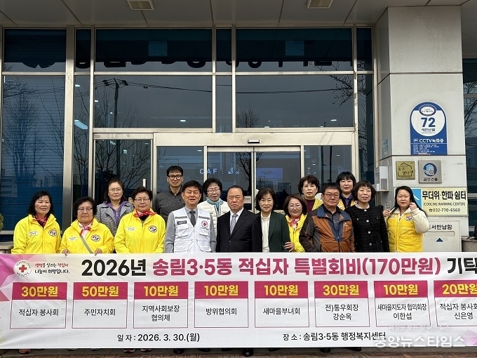 신은영 송림3·5동 적십자봉사회장은 “자생단체와 주민들의 작은 정성을 모아 지역공동체에 선한 영향력을 전하는 기부문화 확산에 동참할 수 있어 기쁘다”며 “힘든 시기를 겪고 있는 이웃들에게 조금이나마 힘이 되었으면 좋겠다”고 말했다.