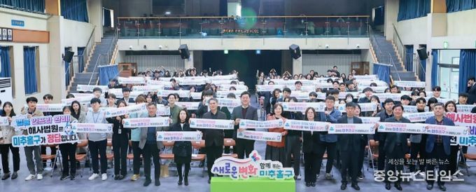 (중앙뉴스타임스 = 방재영 기자) 인천 미추홀구는 1일 2026년도 2분기 직원 조회를 열고 ‘인천해사국제상사법원(이하 해사법원) 미추홀구 유치’를 위한 캠페인을 개최했다.
