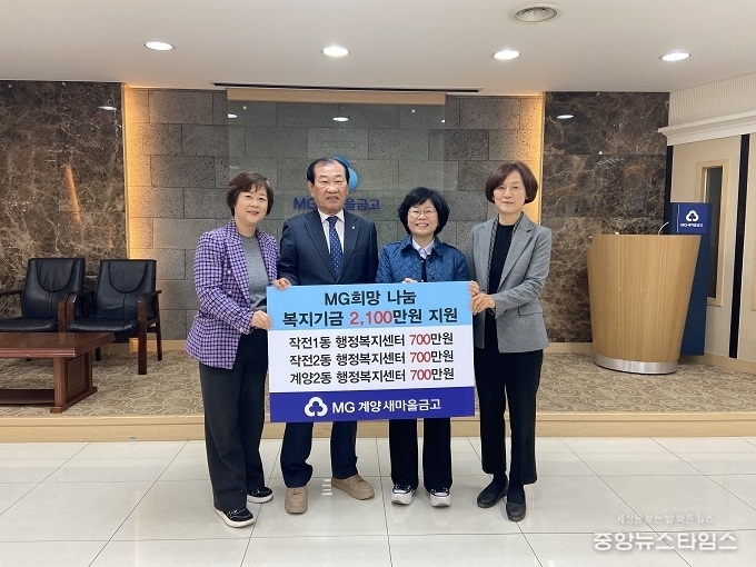 구 관계자는 “어려운 시기에 따뜻한 나눔을 실천해 주신 계양새마을금고에 깊이 감사드린다”라며 “기탁된 성금은 도움이 절실한 이웃들에게 소중히 전달하겠다”라고 말했다.