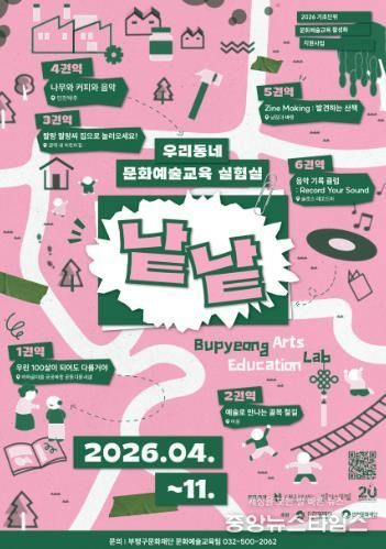 (중앙뉴스타임스 = 방재영 기자) 인천 부평구문화재단은 생활권 밀착형 문화예술교육 프로그램 ‘우리동네 문화예술교육 실험실, 낱낱’을 4월부터 11월까지 부평 전역에서 운영한다고 2일 밝혔다.