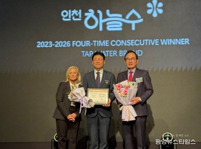 (중앙뉴스타임스 = 방재영 기자) 인천시 상수도사업본부는 수돗물 브랜드 ‘인천하늘수’가 ‘2026 뉴욕페스티벌 대한민국-국가브랜드대상(The 2026 NYF K-NBA)’ 수돗물 부문에서 4년 연속 대상을 받았다고 2일 밝혔다.