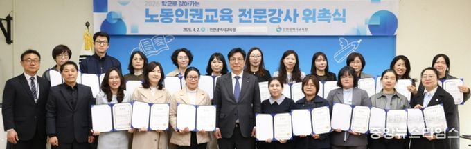 (중앙뉴스타임스 = 방재영 기자) 인천시교육청은 2일 학생들이 노동의 가치를 배우고 인권 감수성을 함양할 수 있도록 돕는 ‘2026학년도 학교로 찾아가는 노동인권교육 전문강사단’ 위촉식을 개최했다.